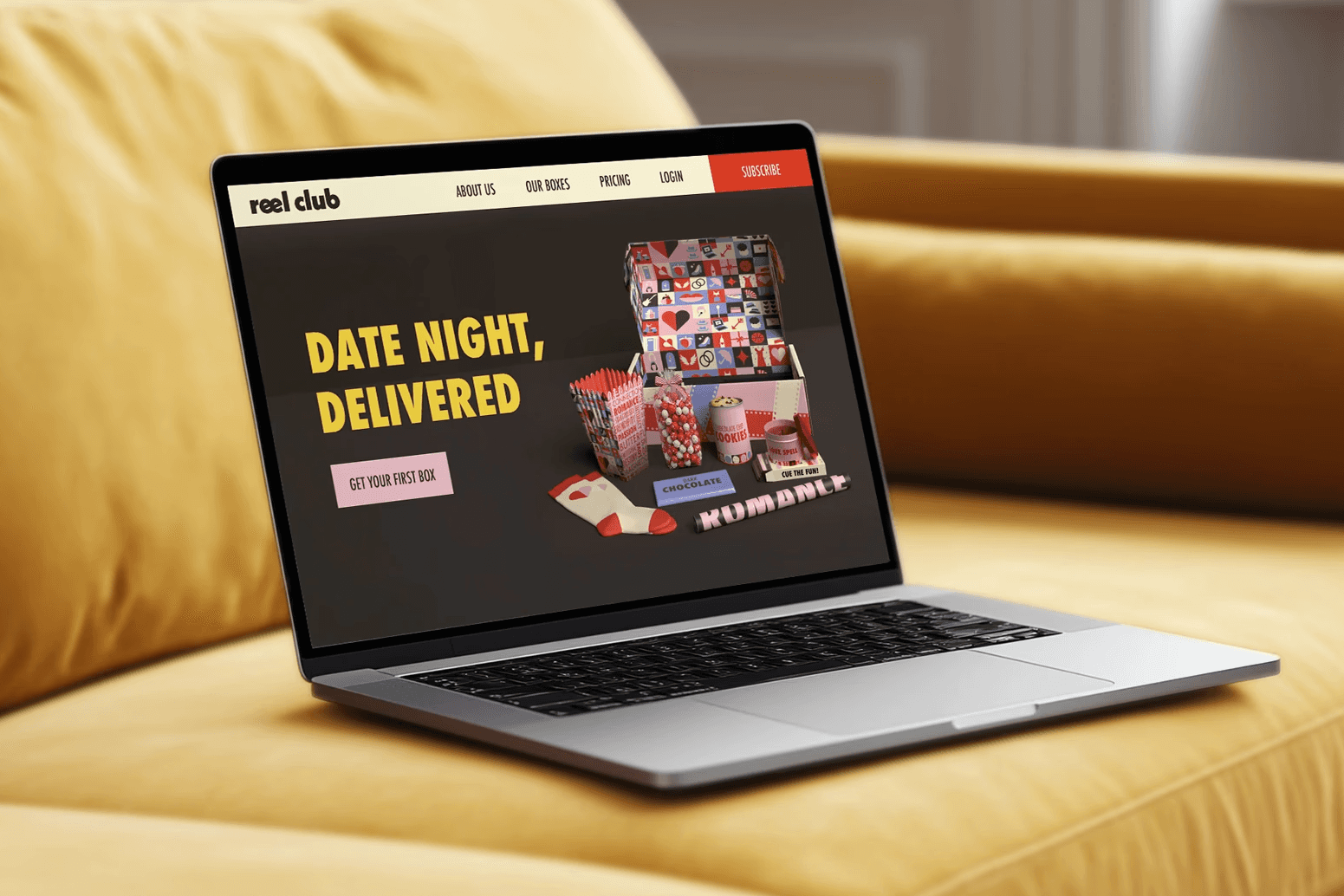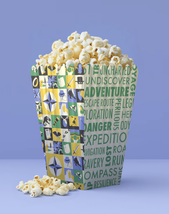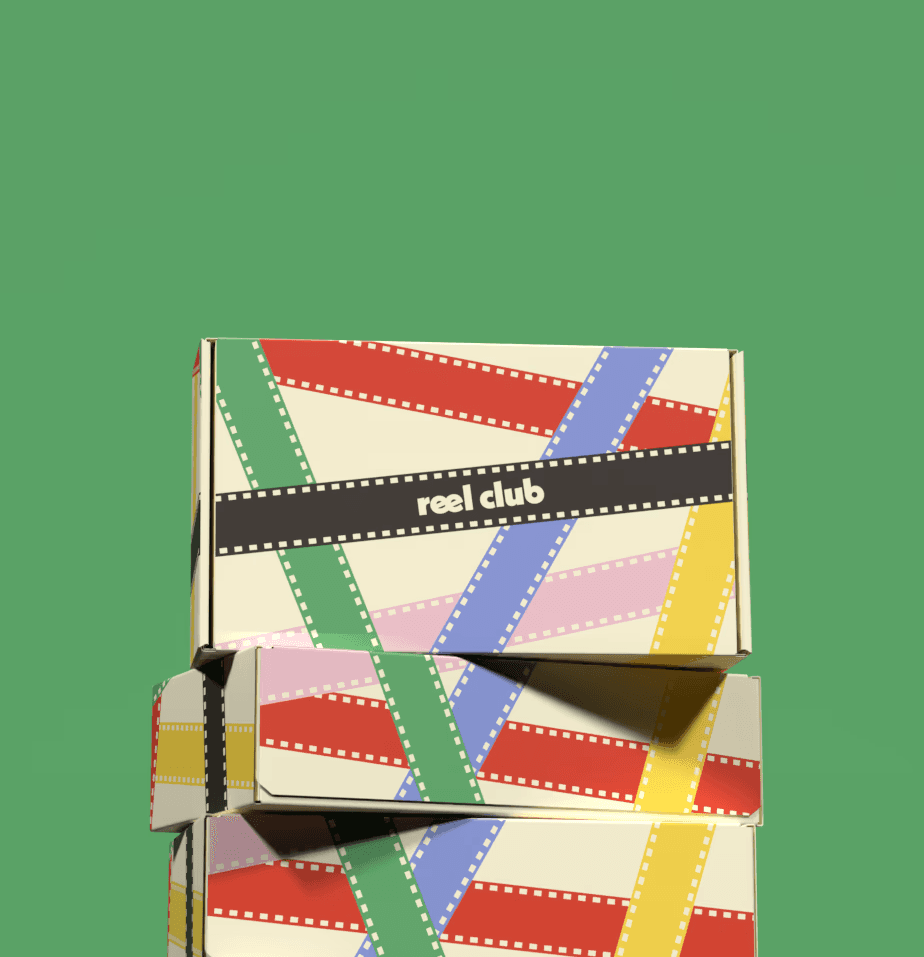 Reel Club is an entrepreneurial subscription service designed to bring the magic of the movies in curated “film night in a box” experience. Each delivery transforms an ordinary evening into an immersive event, complete with themed packaging, a custom-designed card deck to spark conversation and activities, and a cohesive illustrated pattern system that enhances the storytelling. The brand blends nostalgia, ritual, and design to turn movie nights into memorable, shareable experiences.